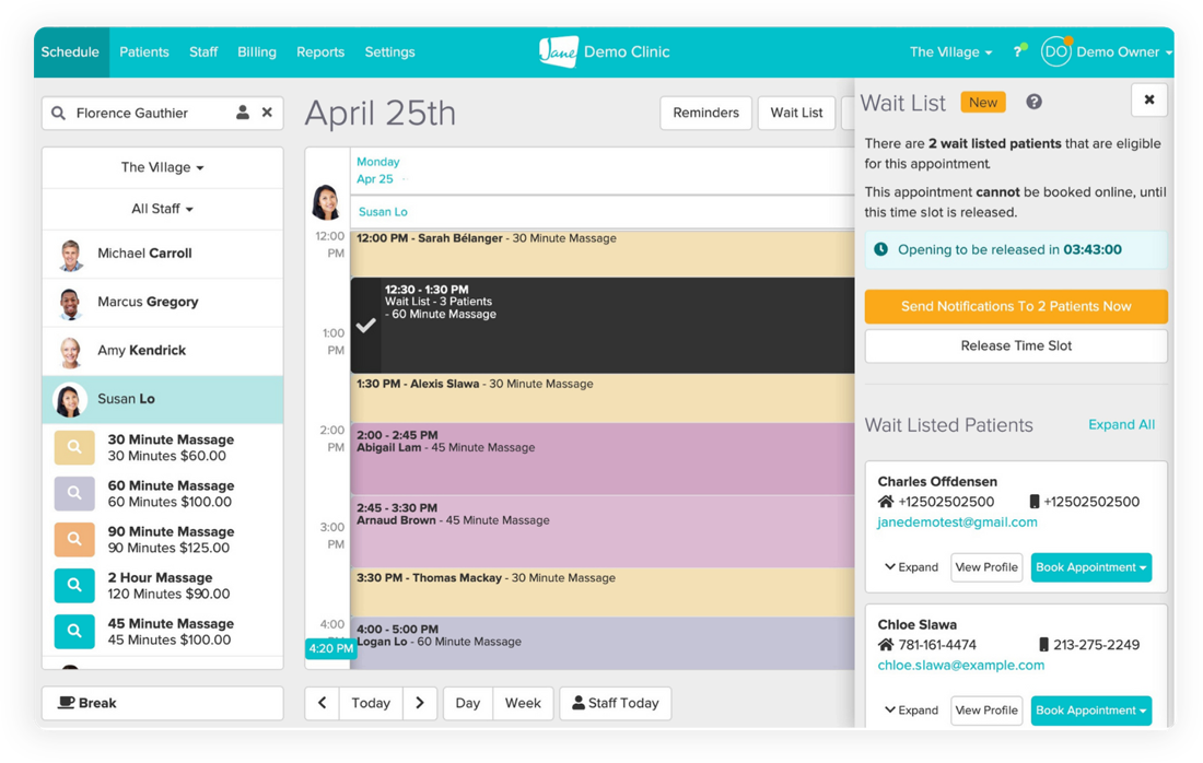 Jane’s Wait List management features will help you keep your schedule full and see your patients sooner
